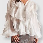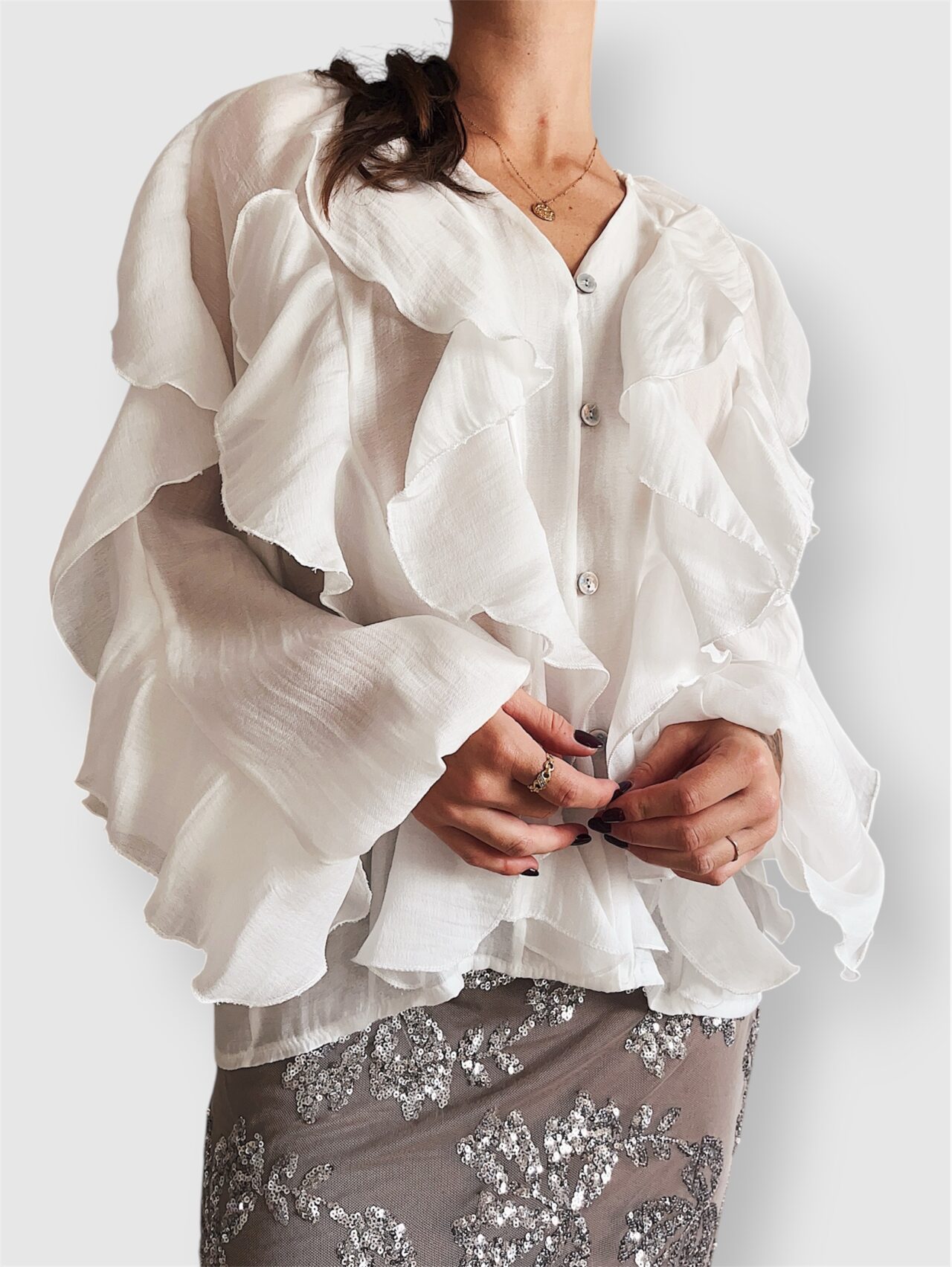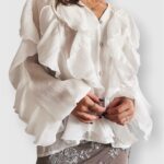 Light and airy, it stands out with its striking volume and textured details. A statement piece that adds effortless movement and style from day to night.