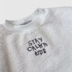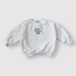 Unisex ecru sweater with light brown/taupe embroidery (center front)